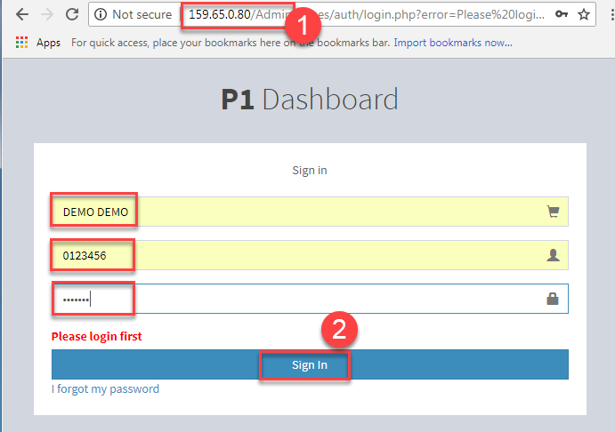 1. Open browser and enter the link http://159.65.0.80/Admin