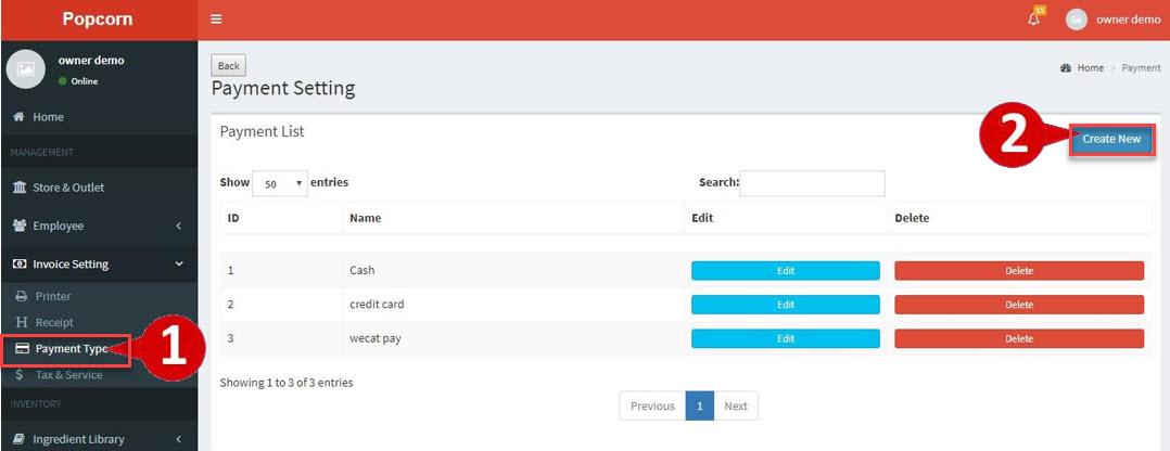 1.Go to Invoice Setting > Payment Type2.Click Create New