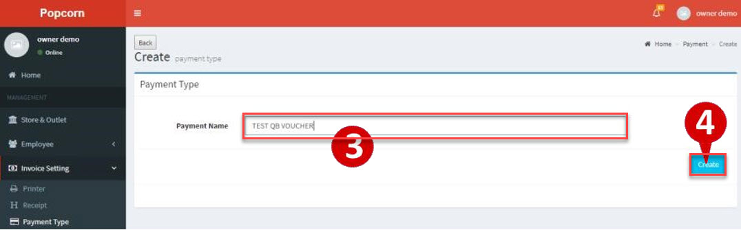 3.Enter new payment method name ->4.Click Create