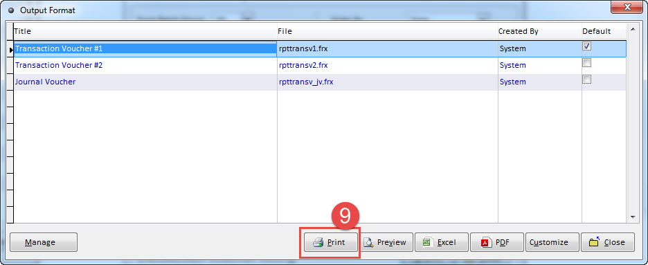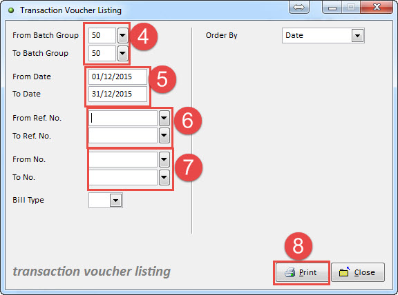 4. Batch ( Journal 50 ) 5. Date 6. Reference no 7. No 8. Print