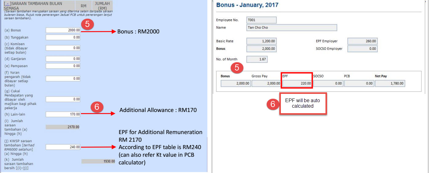 5. Bonus -> 6. EPF