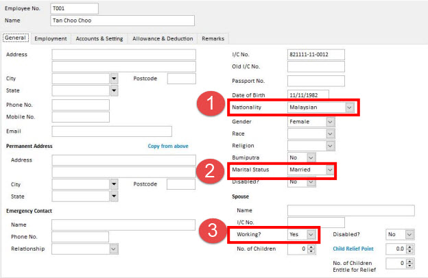 2.Enter employee particular