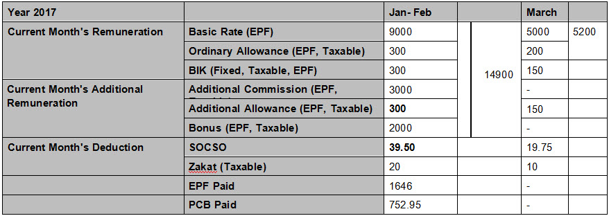When an employee from previous company join into current company during payroll year. Use normal PCB table.